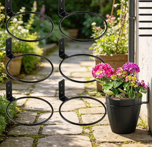 6-Inch Flower Pot Holder Rings, 8-Pack Wall Mounted Metal Planter Brackets for Home and Garden